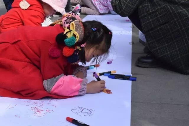 家长和小朋友们参与到“画海鸥”活动中