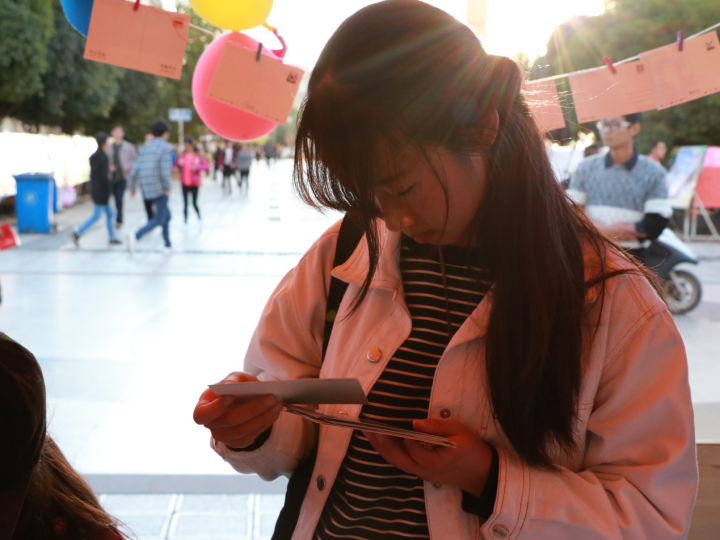 为了丰富校园感恩节活动,11月24日牛牛游戏下载 新媒社和青协在怡园食堂门口举办了的“爱无声·感恩包邮”活动,通过寄写明信片的形式,为同学们提供了一个方式,去向想感谢的亲人、挚友、老师…..寄写一份感恩问候。