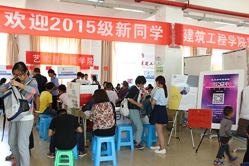 志愿者平稳有序的引导学生做好招新工作,耐心细致给报到的新生讲解报到的程序,带领新生打印注册报告单,交费、注册并填写注册报告单,收录信息,给学弟学妹们发放学生手册以及校园卡以及找到带领他们找到自己的宿舍并且领取军训服。老师以及学长学姐们的热情让15级的学弟学妹们心中有很大的安慰,第一天到校,有了学长学姐们的热情友善的招待,15级新生们都能快速的融入到多姿多彩的校园生活。