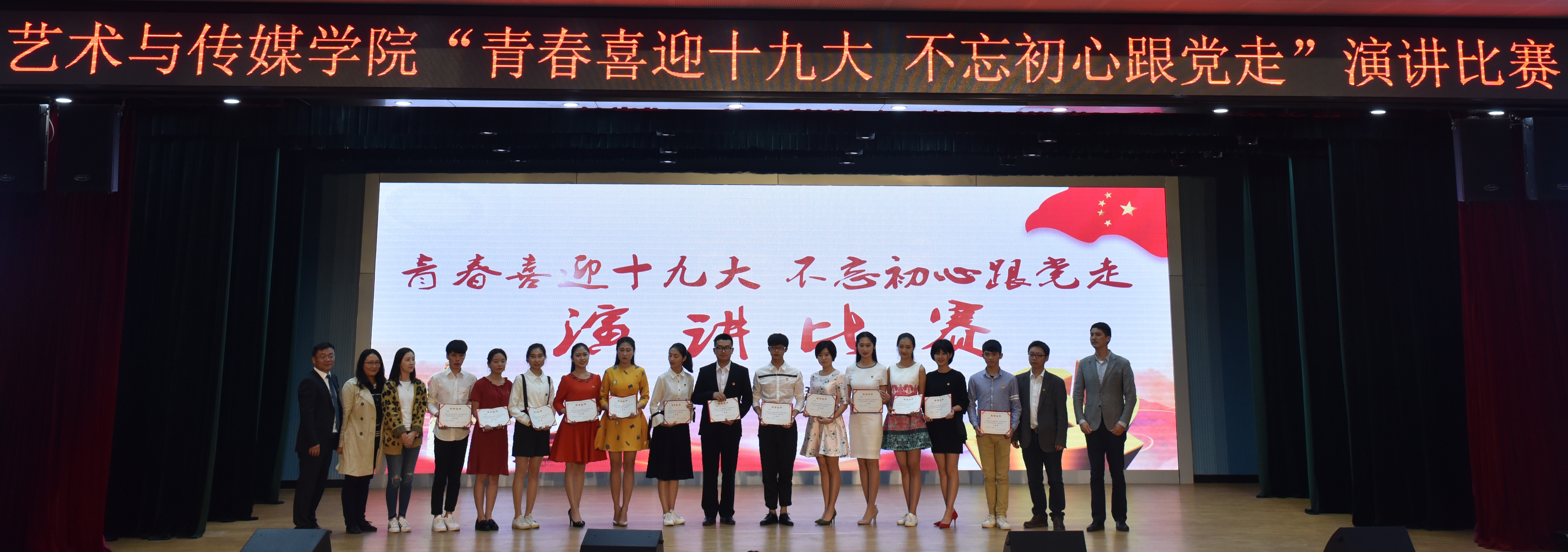 院长助理李怀苍副教授、院长助理崔颖博士、新闻传播系副主任刘红副教授、广播电视艺术筹备组组长孙雅萌老师、学工办主任郝儒梁老师担任评委。13名进入决赛的选手们时而激情昂扬,时而理性说法,不忘初心,方得始终,树立信心,继续前进,选手们有的把自己的人生道路和国家的发展结合起来,有的说出了别人的动人故事。初心是一种向往,一种追求,是鼓舞你向着目标迈进的力量。最后,李怀苍老师、崔颖老师对整场比赛做了总结点评。