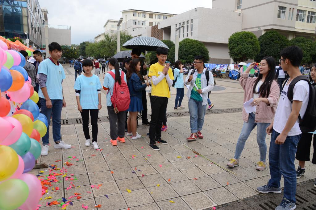 此次活动一扫法制宣传一贯的枯燥,充满活力。还未走近现场,就被一阵欢快的笑声吸引了注意。这是一项趣味游戏——扎气球。通过飞镖把气球扎破回答气球中的法制小问题,以回答数量的多少来赢取奖励。互动性强,吸引了不少同学的围观和参与。同学们从中不仅收获了快乐和喜悦,也加深了对法制知识的了解,可谓一举多得,充分体现了本次活动对同学们的教育意义。