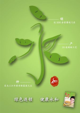 作品描述:使用豌豆拼出永和的‘永’字,每个部位都代表了永和豆浆的健康豆浆理念。