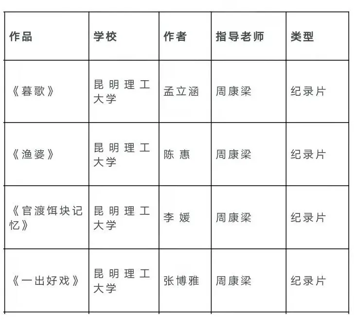 以上八件入围作品是周康梁教授在传播学专业《纪录片创作》《电视节目模式创意和研究》《毕业设计》等课程中,指导本科学生完成的作业和毕业创作。多年来,周老师一直以实战和媒体的发稿要求为标准,从技术技巧到创作理念,从职业态度到最新的媒体前沿,多方位多角度对学生进行训练,本次获奖的十余名作者跨越四个年级,参赛的所有作品都经过很多遍修改和打磨,是师生们团结协作、不懈追求的结果。另外,2019级一名在读研究生的作品入围专题片组。