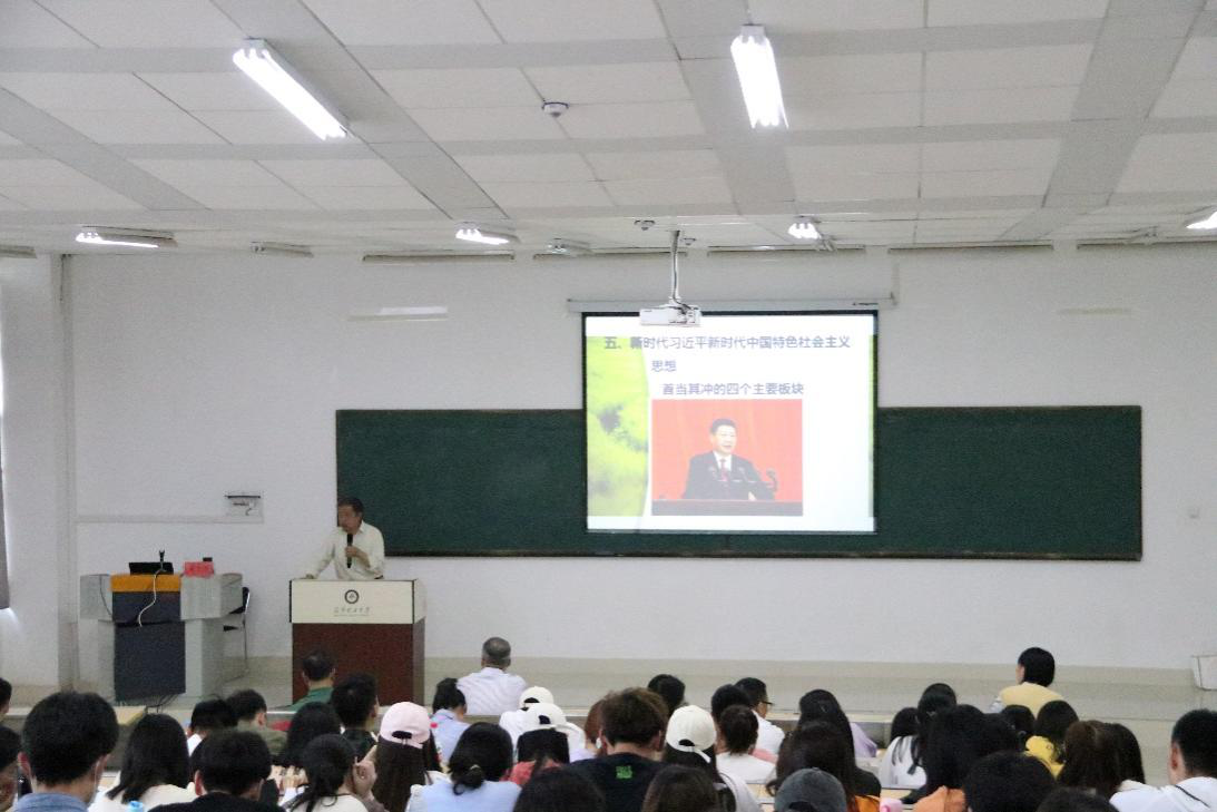 金子强教授以《从石库门到 ——中国共产党的百年历程》为主题,以历史事件为出发点,讲述了从1840年前后,中国共产党成立后,新中国后,改革开放以来我们整个国家的斗争史,改革开放史,新中国史。讲座的信息量大,选择的点非常具有代表性,带领我们从石库门到 ,领略马克思主义为什么行、中国共产党为什么能、中国特色社会主义为什么好。金教授知识面广,讲课幽默诙谐,授课过程中引来党员师生的阵阵喝彩,讲座场地座无虚席。