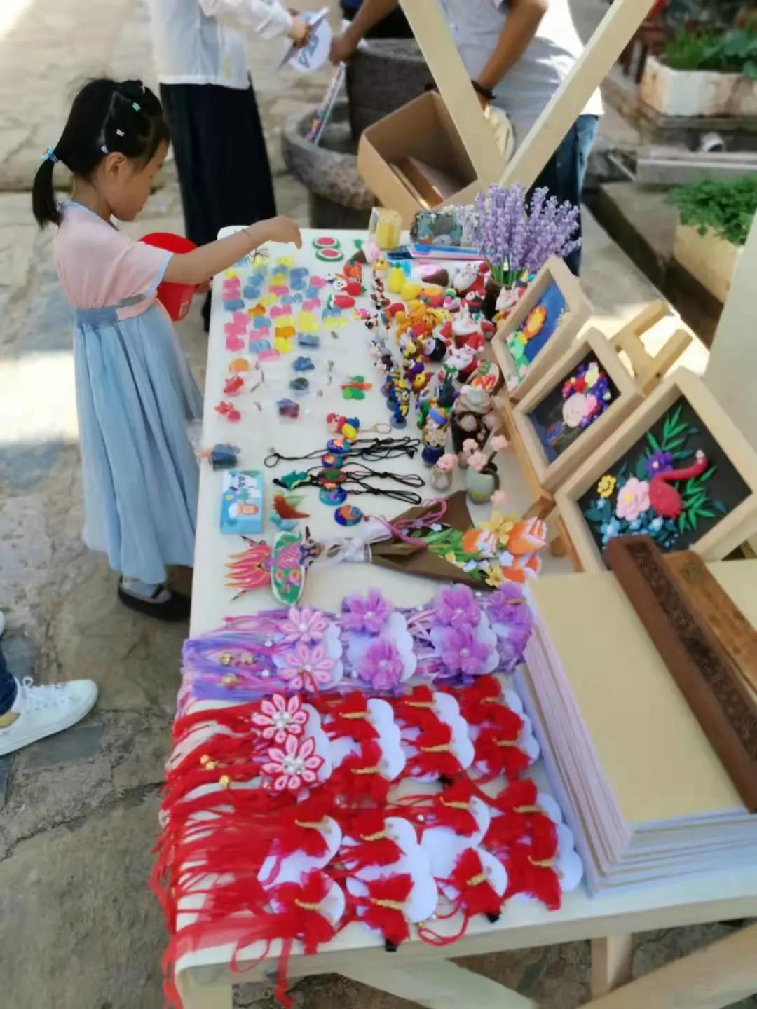 师生在调研中对村庄自然禀赋、民俗文化、民间技艺、特色产品进行了梳理和总结,有针对性的对村庄的整体布局、环境风貌、文化创意、产品创新、民居更新等内容进行了积极的设计创作探索,把福安村传统文化生动的运用到设计之中,形成了丰富的艺术市集产品,村民在艺术市集里对村庄环境设计展品和文创产品表现出了浓厚的兴趣,不断有村民前来咨询和购买。有一技之长的村民,也把自己的刺绣、剪纸、根雕、叮叮糖、鲜花等产品拿到市集上出售,形成了城乡良性互动、村民与市民共同参与的都市驱动型乡村振兴社会实践活动。