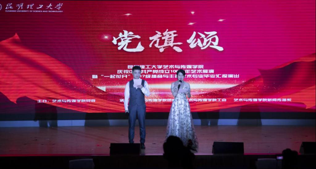 表彰大会后,进行了“党旗颂·庆祝中国共产党成立100周年”艺术展演暨“一起花开”2021届播音与主持艺术专业毕业汇演,汇演由“红色礼赞”“热血青春”“花开少年”三个篇章组成,通过歌舞、小品、配音、访谈和诗朗诵等多种艺术形式,回顾了党的奋斗历史,热情讴歌党的光辉业绩,继承和发扬党的光荣传统和优良作风。