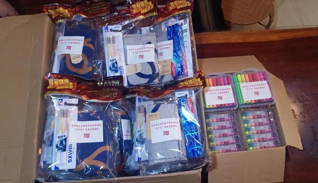会后,团队成员对为村民们准备的物资进行了分类整理,并为每一份物资贴上了印有团队名称标志的贴纸。