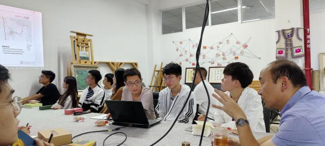 走访了导师工作室,并与在工作室学习的研究生亲切交流,询问学习和生活情况,鼓励同学们要认真学习、努力提高自己的综合素质;要全面地发展,完善自己的知识结构;要自信,相信自己在经过研究生的历练后会有更加精彩的人生。周峰越副校长仔细听取了研究生的设计方案汇报,并对方案进行了详细指导,要求同学们在汇报方案的时候要图文并茂,文字简洁;指导同学们注重细节,要把设计图做得直观易懂,学生们获益良多。