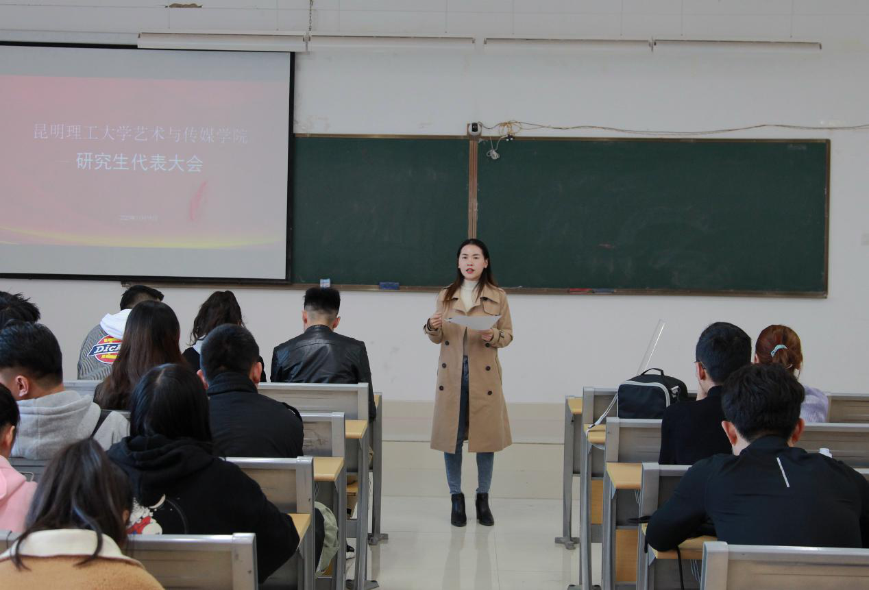 在公教楼410室召开了研究生代表大会,由团委书记桂巧玲老师主持,艺传院研究生代表共34人参加。