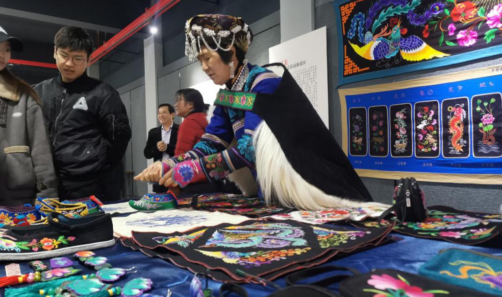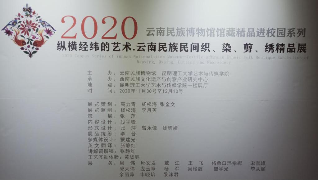 党委书记孙刚、党委副书记严波,西南民族文化遗产与创意产业研究中心主任张瑞副教授、研究员田野副教授;云南民族博物馆陈列部主任李月英研究员、策展人张萍研究员、科教部兼博物馆翻译张静红老师、文物部黎沫君老师;云南省彝族刺绣非物质文化遗产传承人游定美老师等。