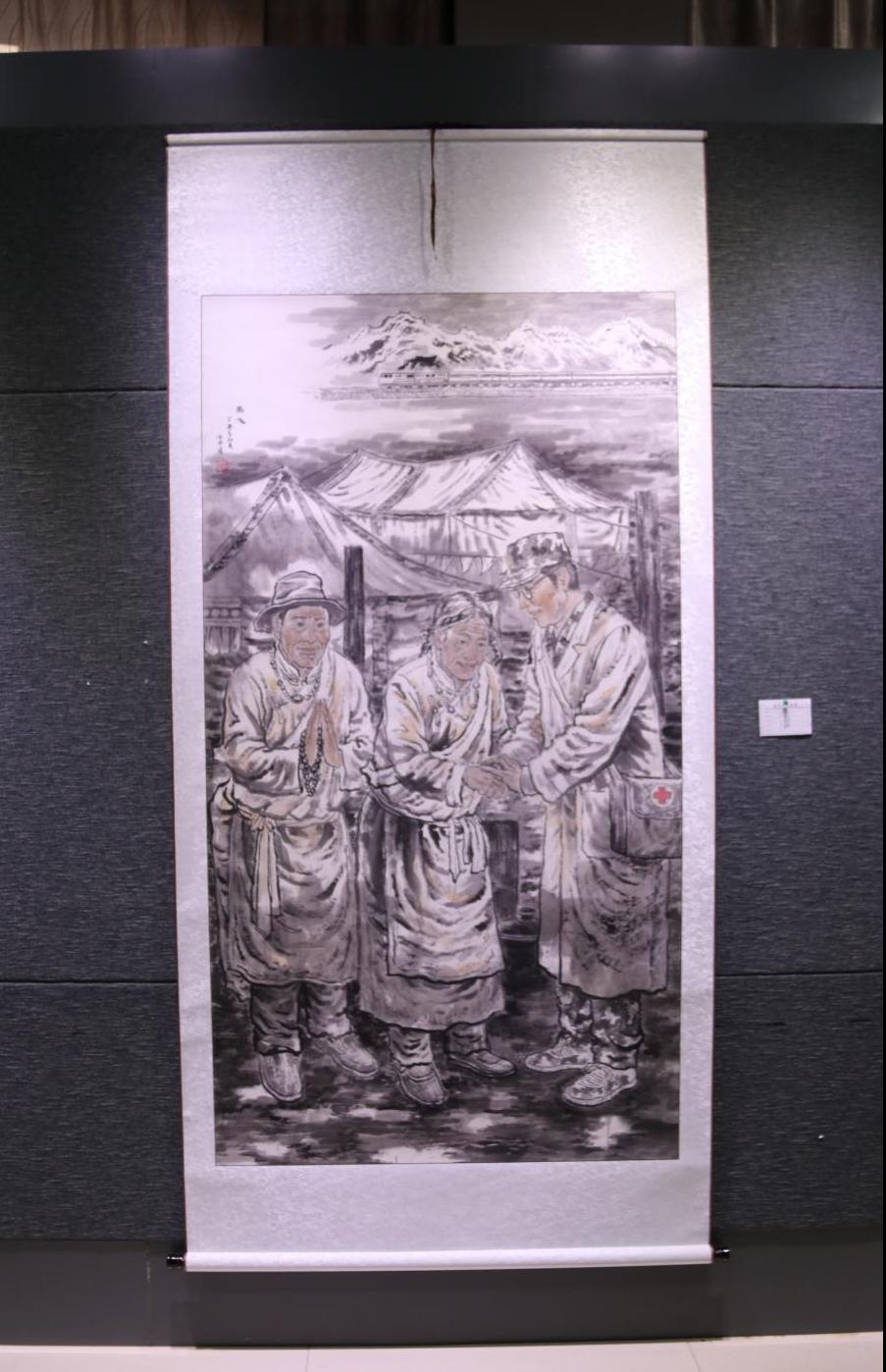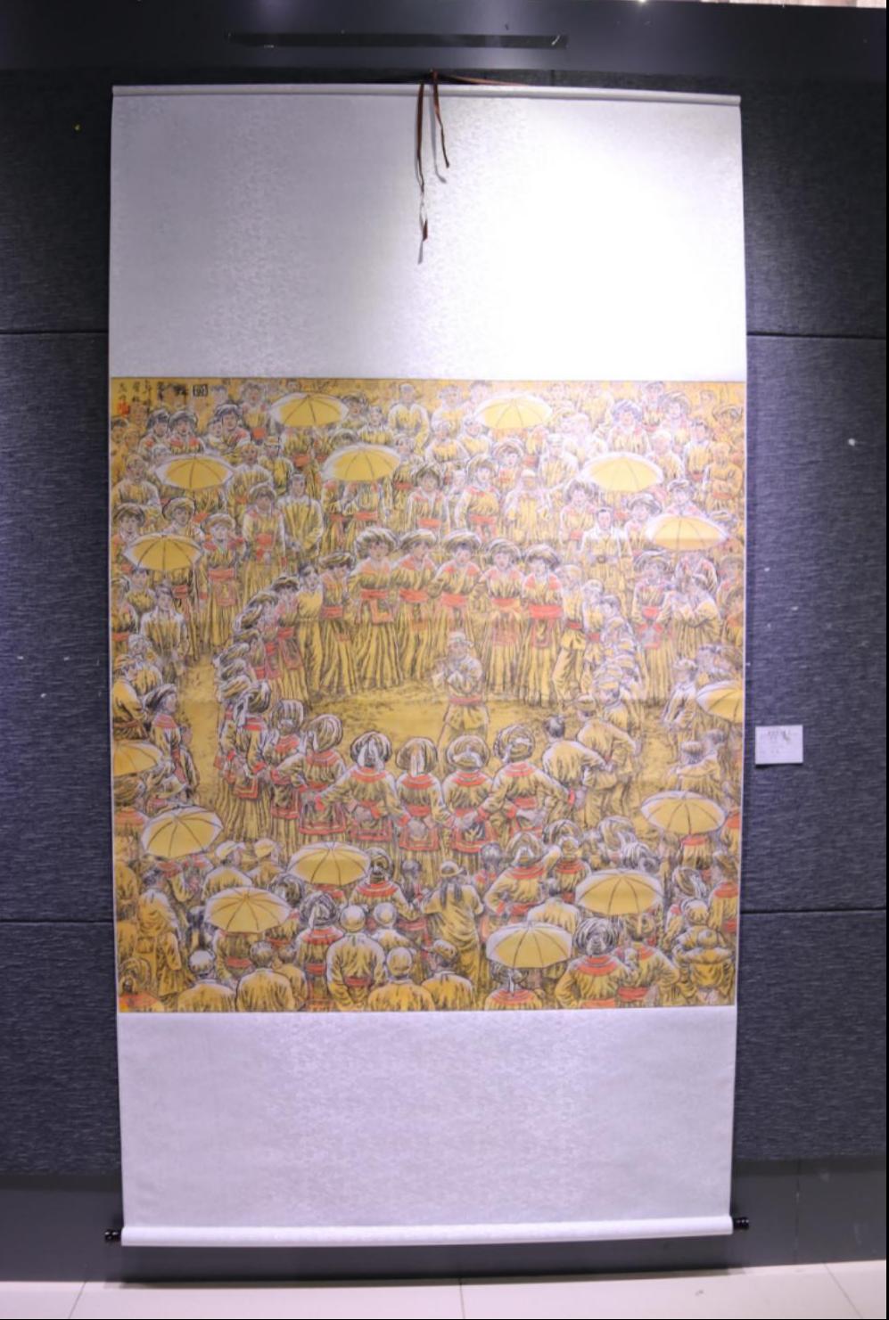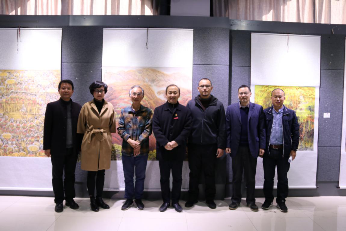 领导的到来表示感谢,并谈到举办此次画展的初衷以及作品的创作过程;他希望大家在观看作品时,从平常心、本心和真心去观赏,相信自己的直觉。