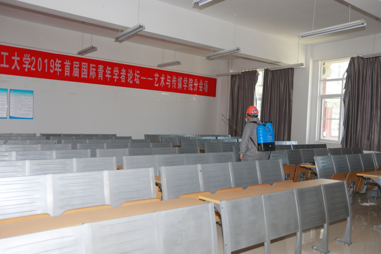 公教楼内的机房、多媒体教室、专业教室、工作室和办公室等房间和场所进行了集中消毒作业,共计消毒房间40余间。
