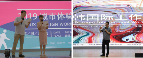 的都江教授和武汉理工大学的张完硕教授主持开坊仪式,韩国国民大学交互设计研究所潘荣焕教授为工作坊定题并讲话,潘荣焕教授介绍了往期工作坊的相关内容,并对本次工作坊主题进行解读和相关任务布置。潘荣焕教授把来自中国、韩国、越南三个国家的十余名导师以及三十余名同学划分为三个小组,围绕昆明、大理、丽江三个城市开展为期三天的实地的调研。
