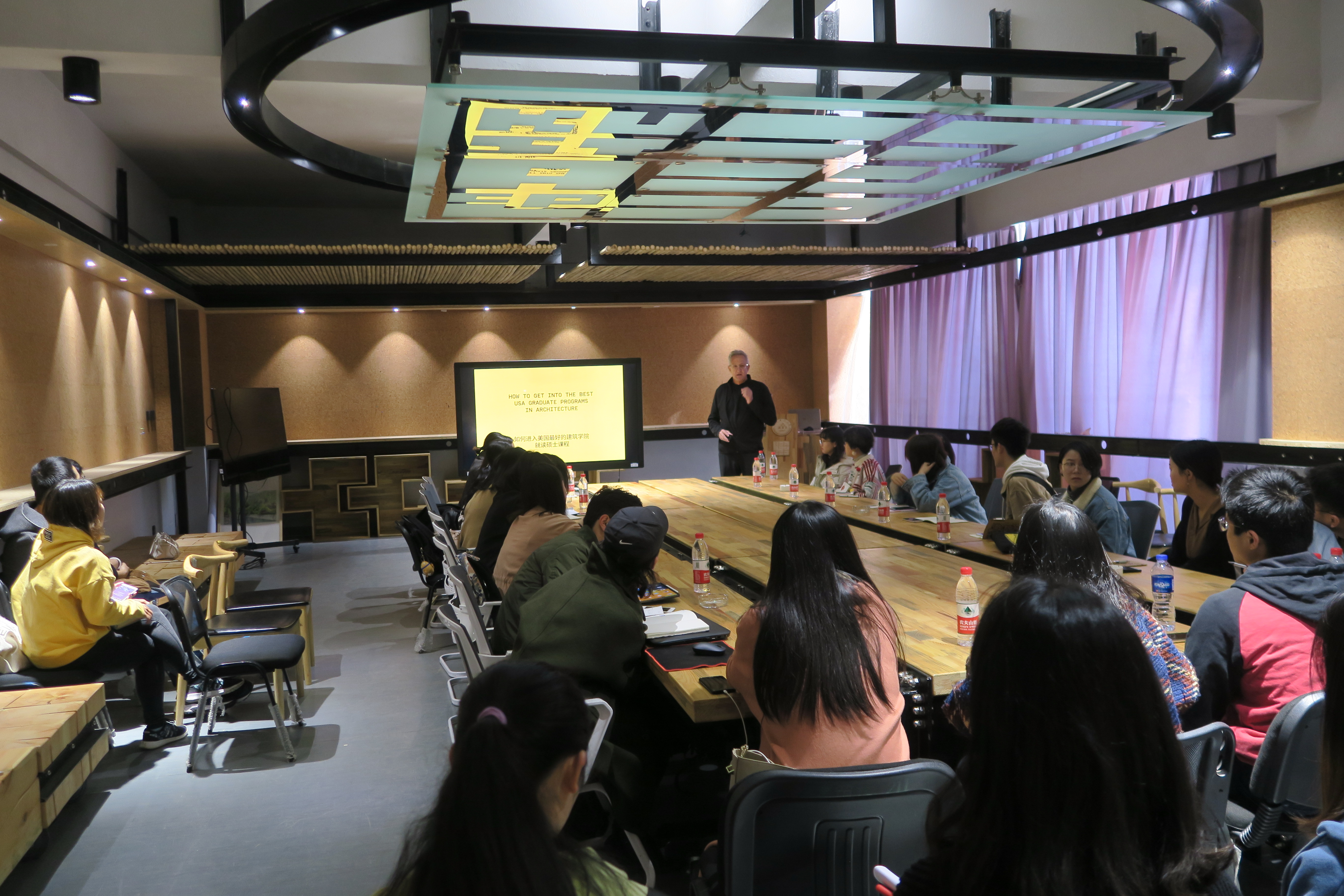 29 日中美国际设计工作坊同时展开,聚焦于探讨中美教育的差异——如何申请美国研究生,会上探讨了中美高等教育的差异、美国的建筑教育方式、成功申请的关键等问题。