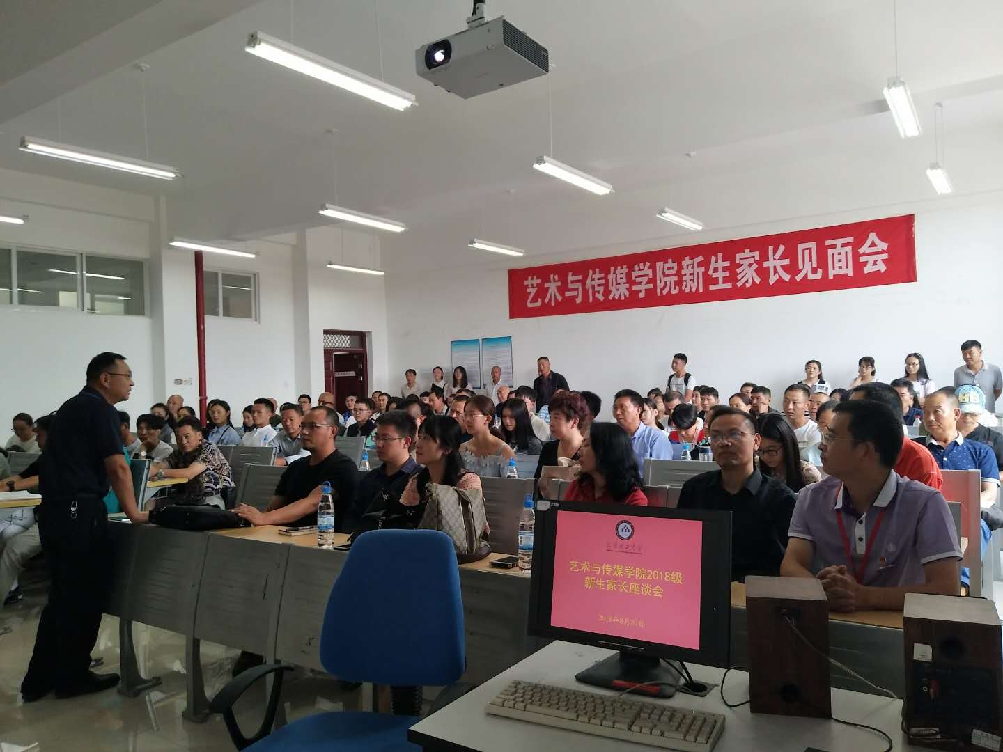学工办、团委负责老师及2018级百余名新生家长及部分新生,会议由严波副书记主持。