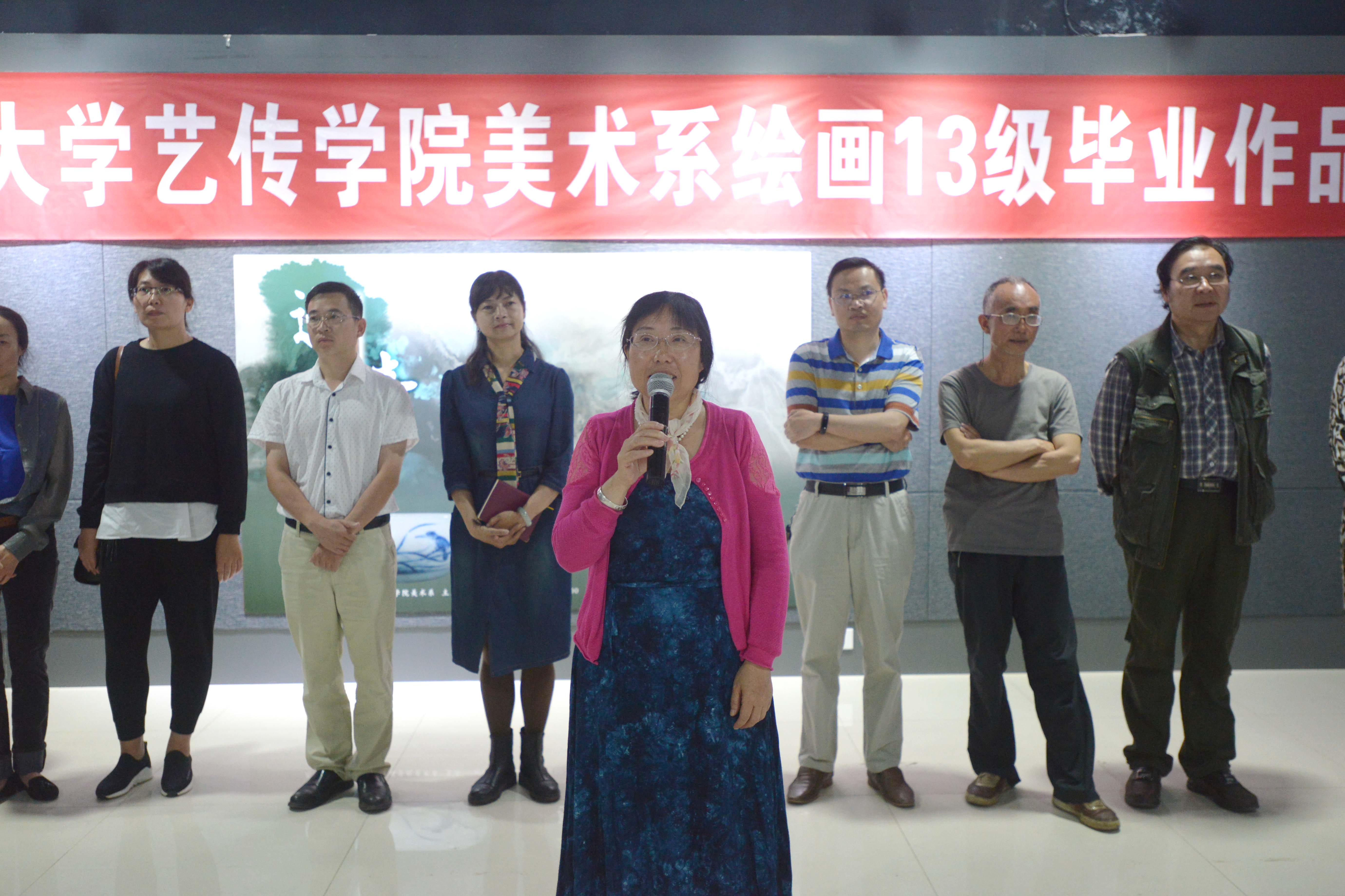 的骄傲。美术系主任杨剑颖老师给毕业班的学生做了简短的寄语,真诚地希望同学们在今后的工作生活中继续坚持绘画创作,用艺术的技能、知识不断提升自身修养。毕业班班主任陈艳博士也对学生四年学习生涯做了形象地总结,并再次阐述了画展命题——“巡青”的含义,寓意学生入学之初,从青涩迷茫的状态步入丹青世界,一步步走来,到今天已逐渐成熟,期望今后能青出于蓝胜于蓝。王海云教授也从人文精神的角度热情地肯定了同学们的艺术创作,同时宣布本次画展正式开幕!