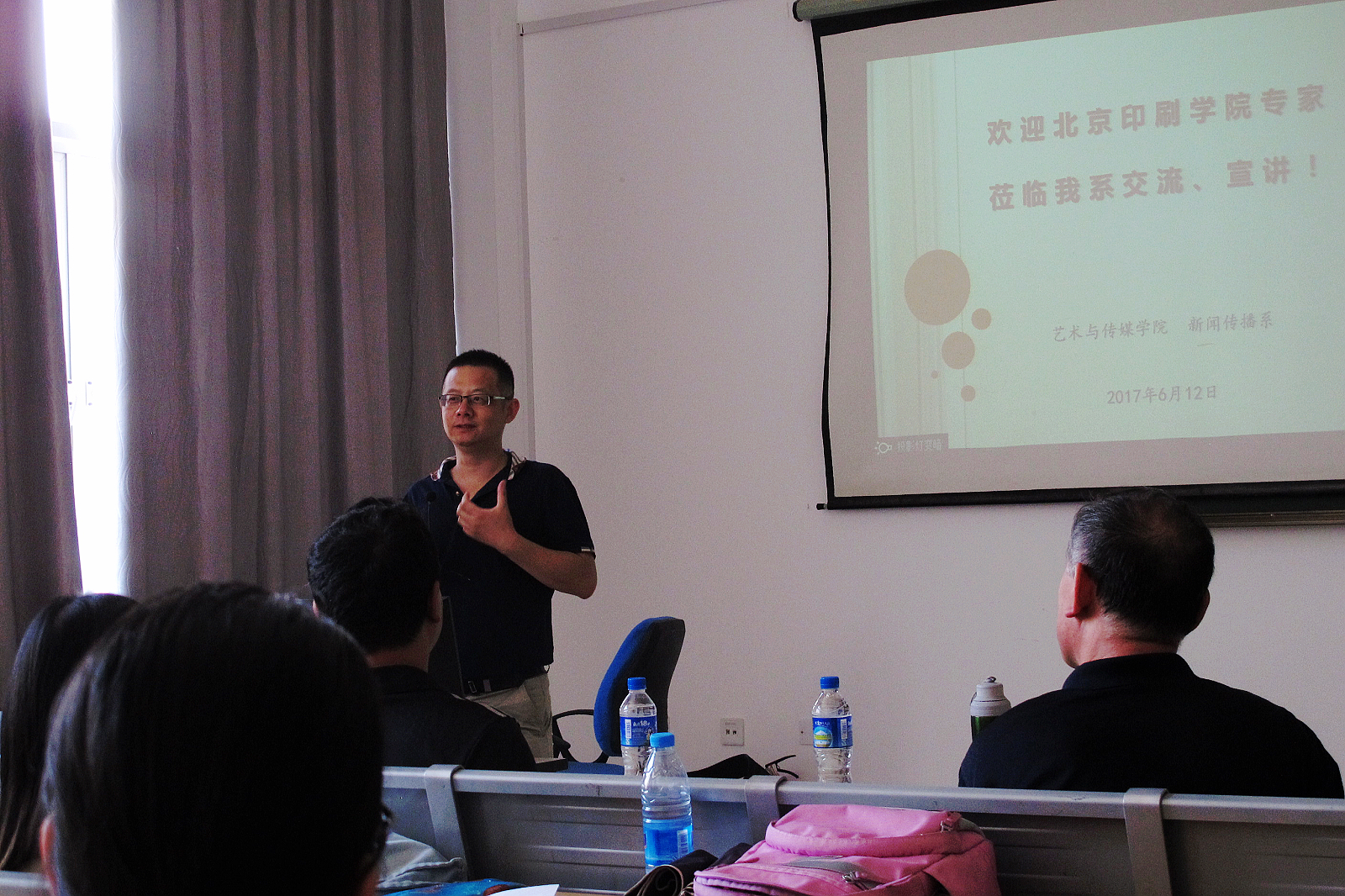 ,与新闻传播系的师生及广告学专业的同学,就媒介融合时代背景下,传播类学子如何变被动为主动,积极为日后的职业生涯积累“大传播”文化底蕴和复合技能的主题进行交流。