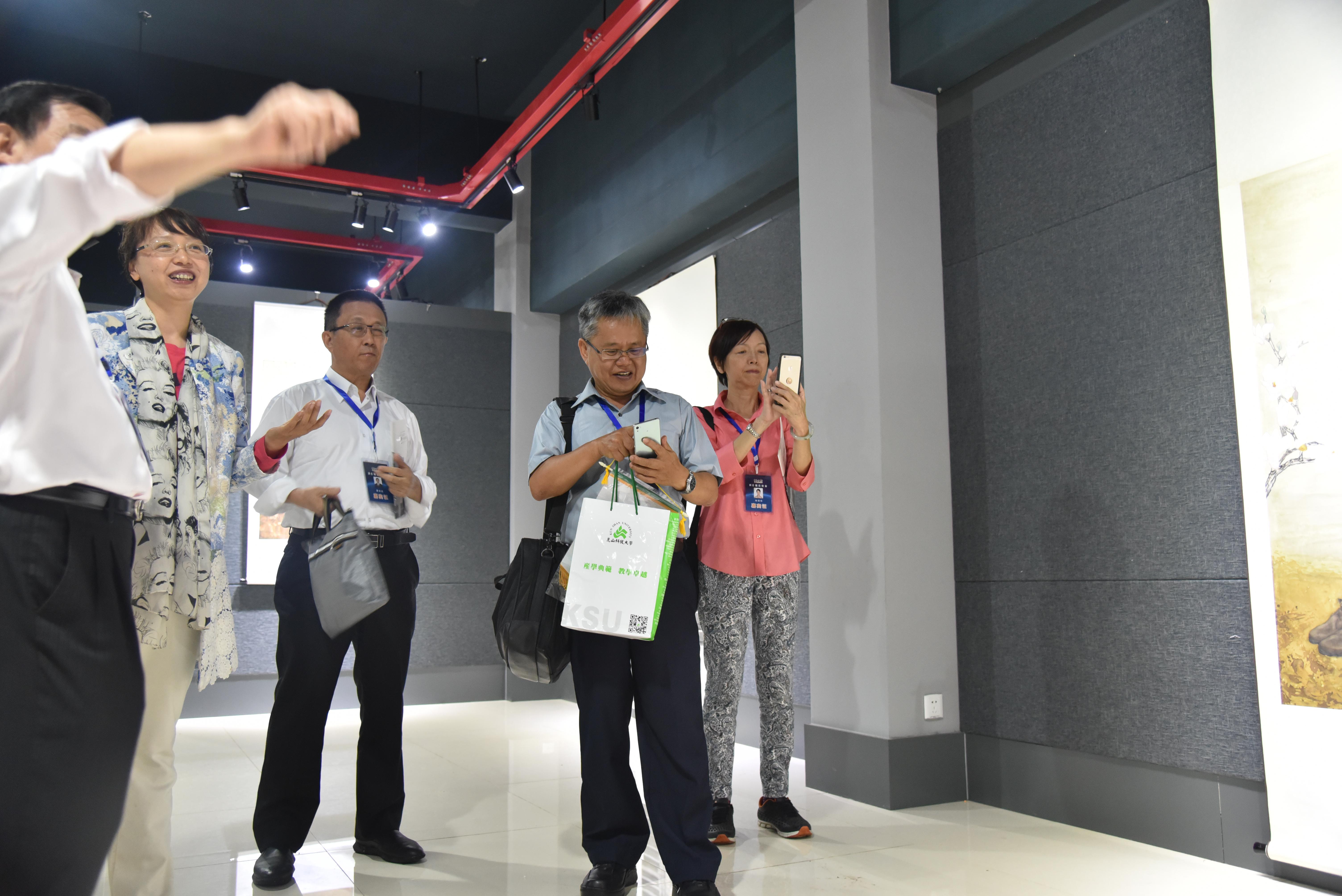 发展和师生创作的情况。东吴大学副校长董保城、树德科技大学副校长颜志荣、中国文化大学大陆文教处处长陈佩伶等七所大学的代表与许佳院长、陈艳博士及作品的作者进行了深入交流。代表团朝阳大学讲座教授、原校长钟任琴团长高度赞扬了毕业生作品对中国画传统的继承和创新以及技法的成熟,对作品中呈现的云南风情产生了深刻印象,当即拍照存念。朝阳大学设计牛牛游戏下载