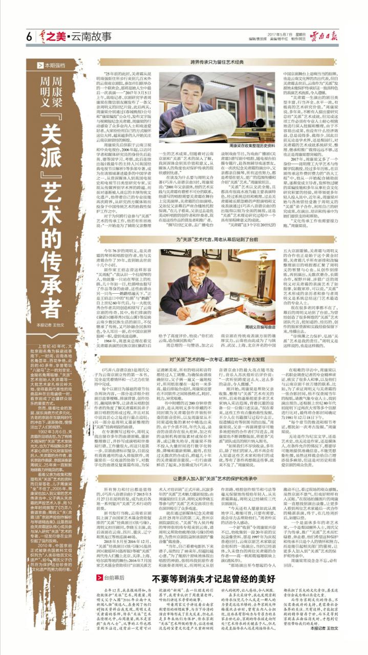 2017年5月7日出版的《云南日报》云南故事版,全版刊登了署名文章《“关派”艺术的传承者》,详细报道了牛牛游戏下载