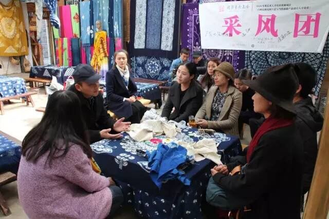 2017年3月17日上午,周校在大理周城璞真扎染坊亲切慰问调研学员,并亲自动手为学员们示范缝纫针法。周校边示范边指导,从消费方式、审美趋向、色彩搭配、材料运用、市场推广等方面指导学员们将民族民间工艺与当代产品设计的结合,学员们认真聆听,对传统手工艺面向文化旅游市场有了更深层次的了解。