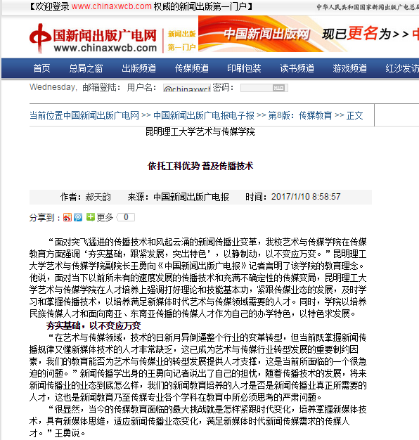 ,时间虽不长,但全院上下凝心聚力,积极进取,不断开拓,在人才培养质量、办学特色上狠下功夫,这次《中国新闻出版广电报》将我们与哥伦比亚大学新闻牛牛游戏下载