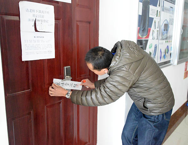此前,牛牛游戏下载 综合办已制作好了门封条,对假期仍然使用的工作室进行了登记、确认。检查组现场对工作室负责人进行了安全防火宣传、叮嘱。