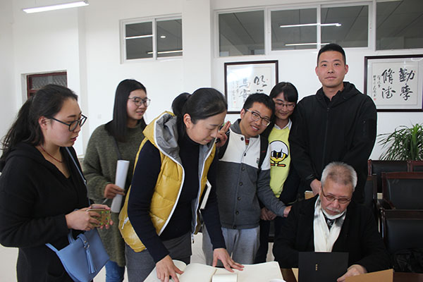老师作进一步交流。老师们谈了自己在设计教学、创作中的一些思考和困惑,请靳老指导,靳老很坦率地谈了自己的一些经验,老师们深受启发。