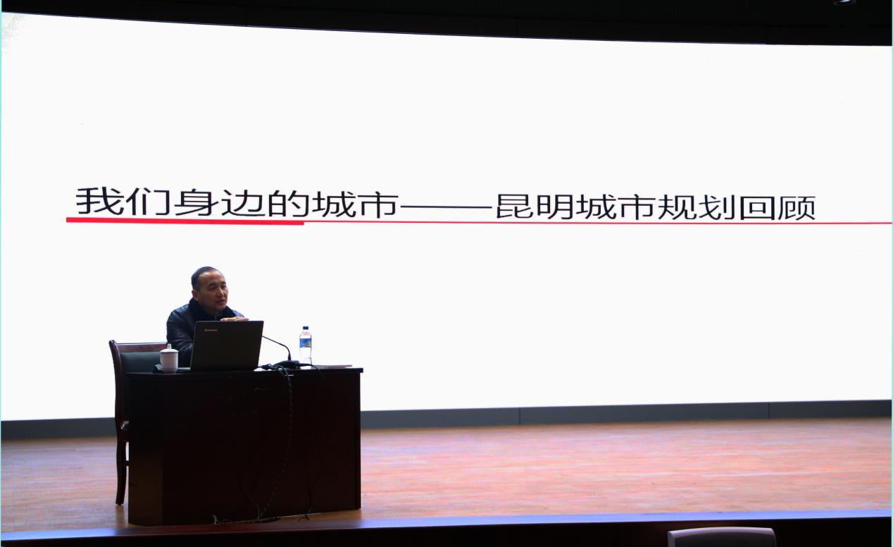 最后,周老师将目光拉近到我们的身边,结合他担任昆明市规划局局长、呈贡区委书记期间在城市美学方面的探索,为我们回顾了昆明市、呈贡区的城市规划与建设。他从昆明市和呈贡区的机遇与挑战、生态环境的治理、绿色产业的开发、传统文化的保护等四个方面展开讲述,对比了近几十年来昆明市和呈贡区的变化,展望了高铁时代来临后城市建设的新挑战,希望艺传院师生为高品质城市生活涂抹上美丽的色彩。