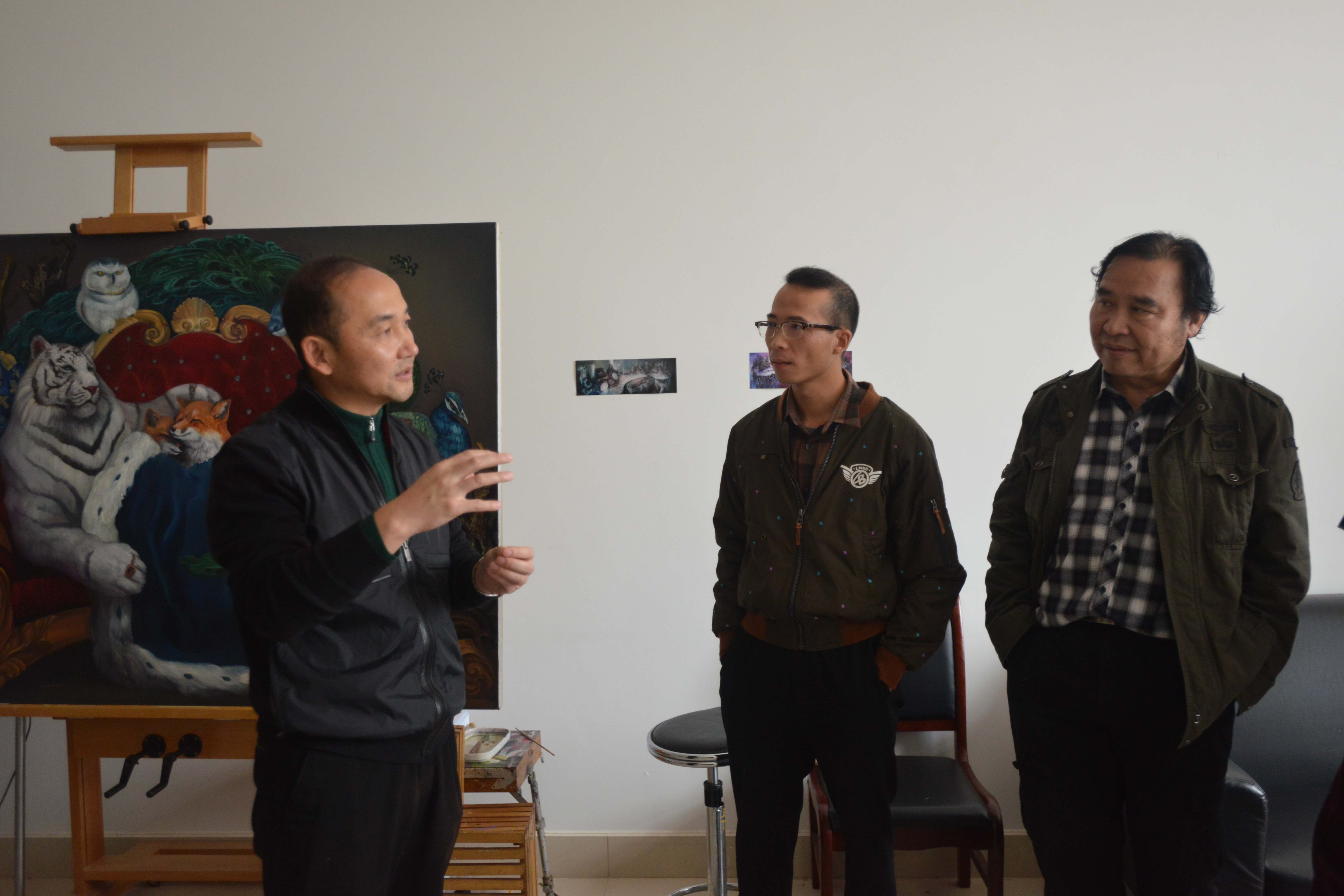 美术系。他走进每位老师的工作室,询问老师在教学中的情况,探讨如何让学生打牢基础,提高就业的核心竞争力;在老师的画作前,周校仔细询问老师创作的初衷、主题和技法表现,深入地分析画作的优点、不足,坦率地谈出他对艺术创作的美学追求。周校与老师、学生边看边谈,同时也把他随身携带的画册、手机拍摄的佳作与大家分享,一起探讨美的渊源、国画和油画表现的差异、创作如何出彩创新、云南画界的历史与现状、云南高校艺术学科的发展和我校如何发展自己的特色等。