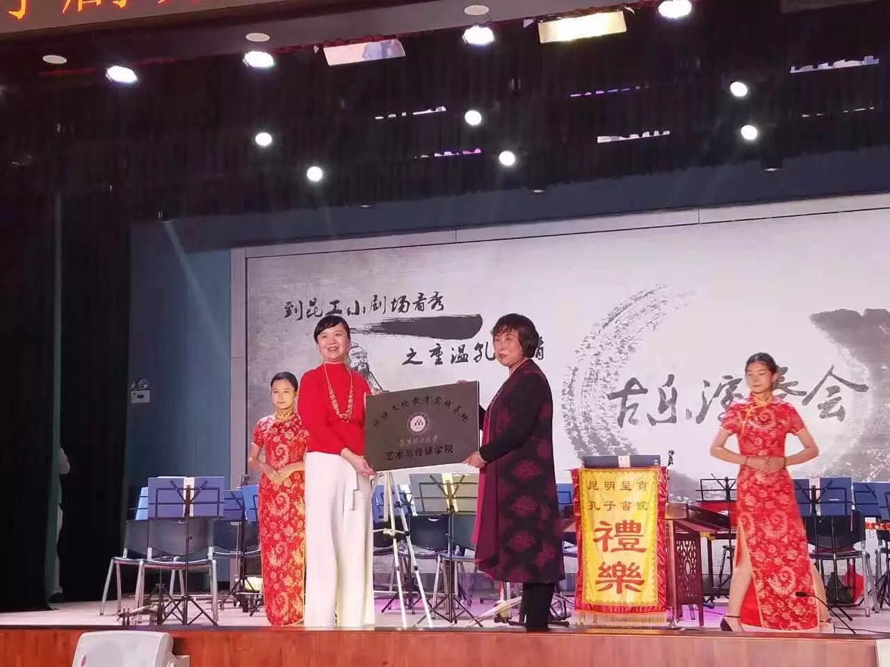呈贡孔子书院段竹英院长接着致辞,她感谢昆明理工大学为书院的老演奏者提供这么好条件的场地,她相信年轻人一定会感受到古乐的魅力,进而爱上古乐和传统文化,将至圣先师孔子的精神、情怀继承、发扬好。
