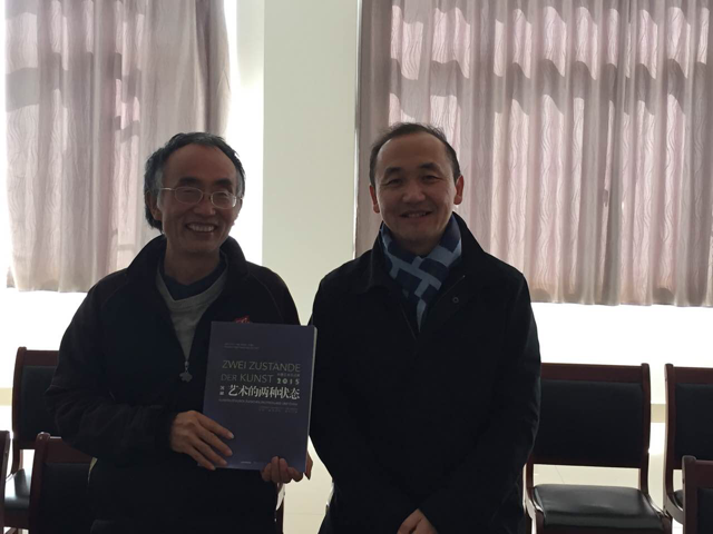 调研时,专门给李晓弟老师送了一本2015年中国和德国艺术展作品集《艺术的两种形态》,鼓励李老师博采众长,创作出更多优秀的作品。