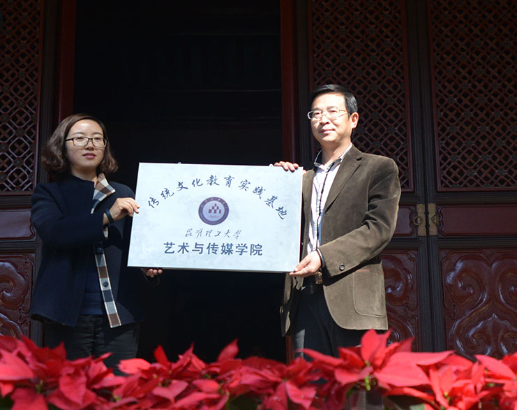 呈贡区王丹副区长和艺传院严波副书记共同为“传统文化教育实践基地”挂牌。