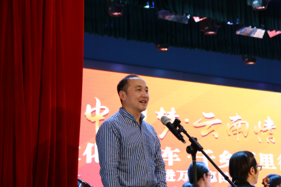 紧接着,云南省省文化厅人事处罗波处长、呈贡区委宣传部王艳艳部长分别致辞,对昆明聂耳交响乐团文化亲农、送戏下乡、惠民演出表示感谢,赞扬昆工建设校园文化的举措,祝愿到昆工小剧场看秀品牌建设顺利。