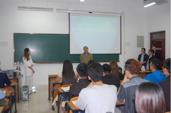 周副校长走进了正在上课的播音151班,亲切地和师生们交流,得知同学们正在上播音专业课时,周校说:“我以前也从事过播音行业,只是后来因为研究方向变了,就不再做播音了,十分可惜。”周校的一席话,顿时拉近了与同学们的距离。周校对同学们提出一个专业建议:作为播音与主持艺术专业的同学,我们在主持时,要清楚地知道自己将要说的每一个字,这样才能表现得更自信,主持时不要说“然而”这个没有意义的副词,它只会显示我们准备不足、不熟悉要讲的内容、不自信。他即兴说了段“习近平总书记到云南昆明呈贡新南站视察”的新闻,语音规范严谨、音色明亮圆润、语句规范、层次清晰,赢得了师生的热烈掌声。他就此条新闻提问学生,检查同学们是否抓住了关键内容,同学们的答案令周校比较满意。最后,周校给同学们布置了作业:以后播报互相提醒是否出现“然后”这个没有意义的副词,同学们表示一定会努力学习,提高专业素养,以优异的成绩向迎接周校下一次检查。