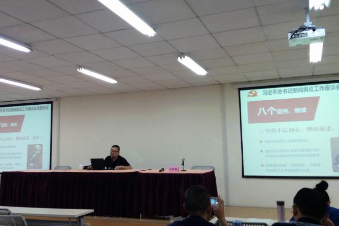 为期两天的学习中,省委宣传部新闻出版处处长牛燕、《光明日报》云南站站长任维东、省委宣讲团成员欧黎明和刘轶飚等同志系统分享了如何深入领会习近平总书记的讲话精神,如何看待国内外传媒行业的变革,如何深化我国新闻传播教育改革、高校新闻传播专业教师如何准确把握新闻媒体的职责性质,如何将做好党和人民的“喉舌”的宗旨贯穿于教学活动等话题,为传播类专业教学实践的下一步开展提供了思想指导。