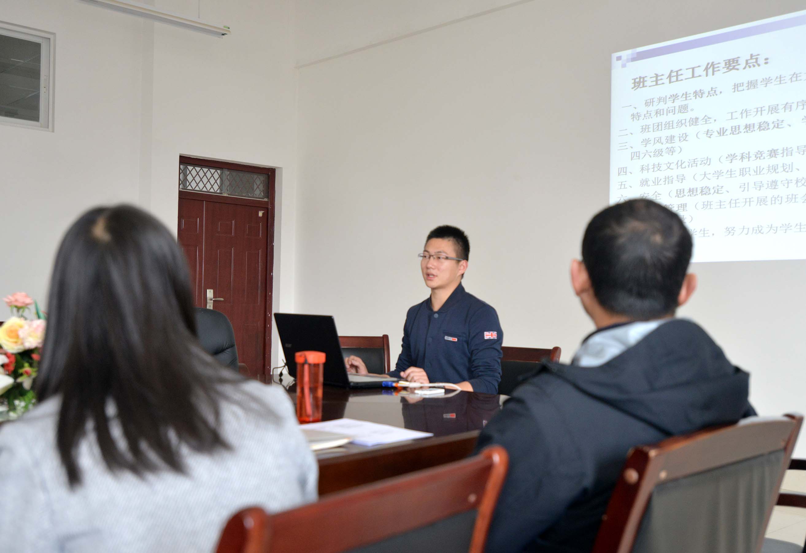 学科建设和专业特点,各位班主任和辅导员有针对性的进行了全面细致的经验分享。辅导员代表就其工作内容和经验进行概括和汇总,针对学生工作的出发点和落脚点,以安全和爱为核心并涉及到研判学生特点、班团组织建设、学风建设、科技文化活动、就业指导等全方位进行工作介绍和分析。同时就如何开展主题班会、开展班会的形式、如何与学生真正相处、学生心理问题的发现和处理等重点问题进行梳理和分享。各班主任则针对自身带班经验和实际问题进行重点案例分析,还对接下来学生工作方面的计划和建设及工作的实际开展落实展开讨论和思考。会议中有班主任分享自身带班成功案例,就考勤和学术讲座为例,以学术讲座参与次数抵消迟到缺勤次数的人性化管理不仅赢得了学生的认同,也解决了老师硬性要求学生参加讲座等问题。畅谈交流中还提及班主任为更好地开展工作和促进专业纵向交流应以专业为单位纵向带班,同时也提出为更好地开展学生专业实践的第二课堂和与社会接轨,应尽快在各专业间建立起以学生操作实践为主,专业老师指导交流为辅的学生实践基地和与本专业相关的学生工作室等提案。