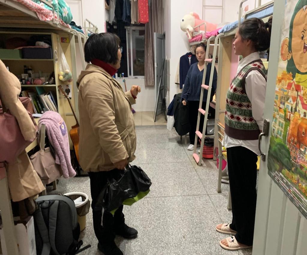 研究生辅导员傅乃芹于10月21日带领部分学生干部到学生宿舍进行走访。本次宿舍走访主要对全体研究生安全情况进行排查,提醒同学们冬季用火用电安全、心理安全等问题,同时要求班委督促同学们严格执行“我在校园”中的日检日报、健康打卡。