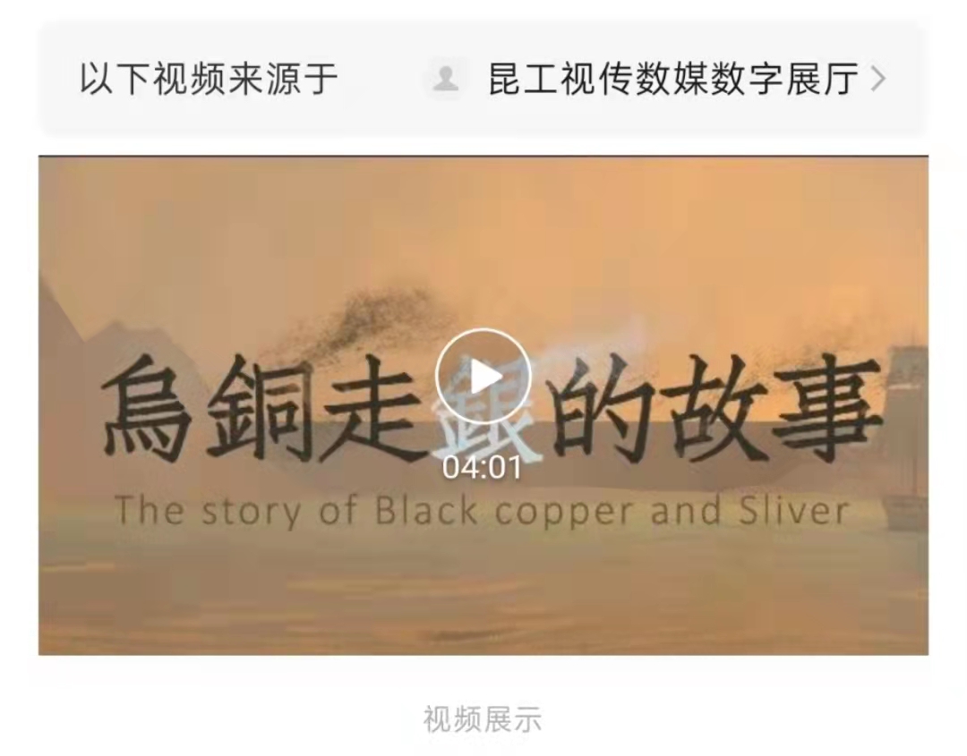 该作品主旨建立在发扬宣传云南本地的非物质文化遗产的乌铜走银,整个作品由两个部分组成,分别是作为开场的数字动画历史介绍与真实乌铜走银制作传承馆的VR体验,通过两个环节的相辅相成,为观众带去了乌铜走银的历史进程与参与制作工序的沉浸感体验。