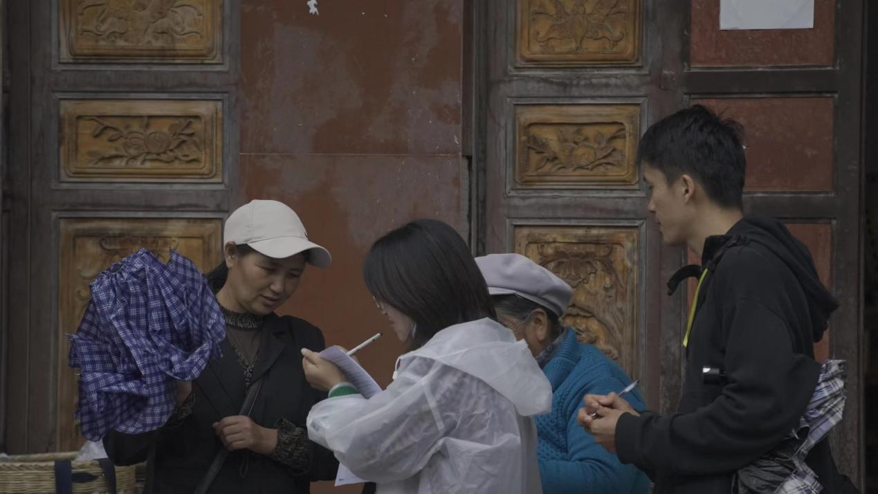 带队教师刘晓楠带领团队成员有序进行实地调研并在当地发放调查问卷,在问卷发放过程中团队成员通过与当地居民沟通,切身感受当地民风民俗与文化底蕴,并将理论宣讲、资助政策宣传、推广普通话有机融合。随后,团队来到剑川县沙溪镇文化站,站长杨惠铭向团队成员讲解了沙溪文化的起源与发展。团队成员认真聆听讲解,积极向杨站长提问,现场气氛热烈。刘晓楠老师鼓励同学们积极思考,并参与到讨论中。