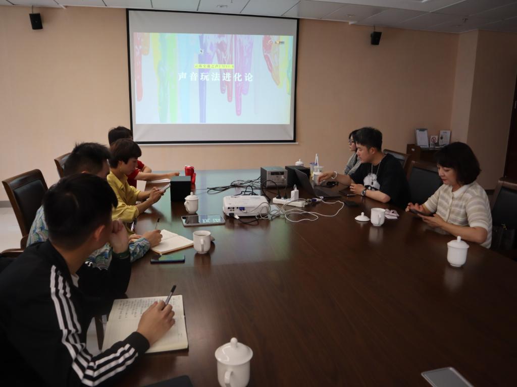 三名电台主持人以《声音玩法进化论》为题开展实践交流。郭昊主播围绕新媒体环境下,该如何丰富自身的知识结构,转换电台主持人固有的意识及思维以适应行业发展需求发表了自己的看法。李珩主播围绕文化类节目的定位及优化,就《月色书香》精品节目的制作和多元化呈现分享了自己的经验。李方圆主播以自己监制的地产类节目如何进行新媒体生产和运作为例,分析了节目获得较好的收听率和短视频流量的成因。随后,进行了提问环节,三位主持人真诚、耐心、专业地为同学们答疑解惑,现场交流氛围轻松而和谐。