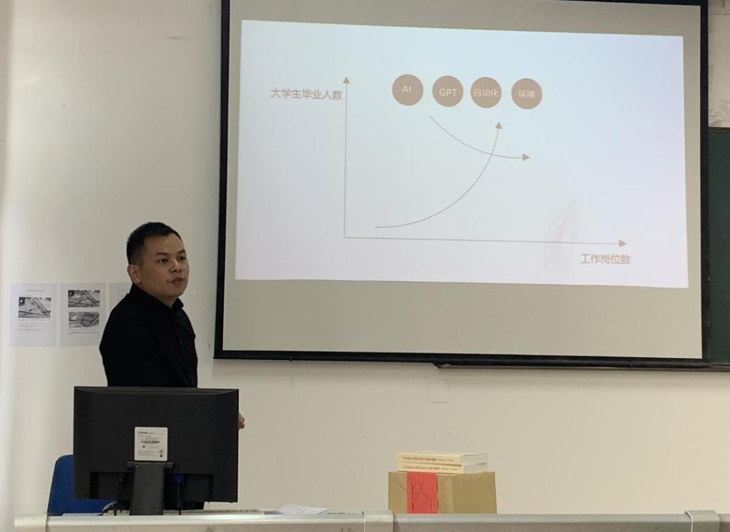 王青就“毕业后如何选择道路”、“如何提高自己的竞争力”、“如何优化简历”三个方向与学生进行分享。谈到就业形势严峻,就业结构矛盾,王青分析,当今人工智能的发展对传统行业和职业带来了冲击与挑战,工作岗位越来越少,人与人之间的就业竞争也越来越激烈。