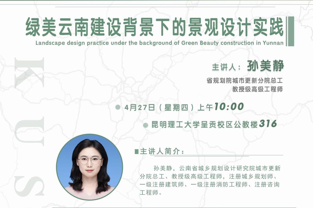 邀请云南省城乡规划设计研究院城市更新分院总工孙美静老师为大家做了题为《绿美云南建设背景下的景观设计实践》的学术报告,牛牛游戏下载