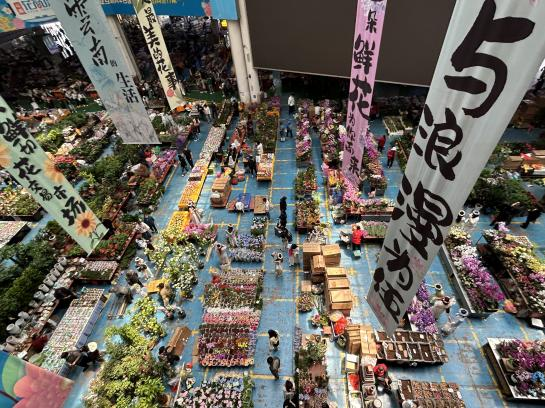 穿梭于缤纷的花海间,师生们惊叹于斗南市场的活力——成吨的玫瑰、满天星、康乃馨在拍卖槌声中流转,花香裹挟着数字经济的浪潮扑面而来。“这里不仅是交易市场,更是中国花卉产业的‘心脏’!”在斗南街道党工委组织委员王航的介绍下,本院学子们了解到斗南花卉的蓬勃生机后,纷纷举起相机,用镜头捕捉眼前的美。