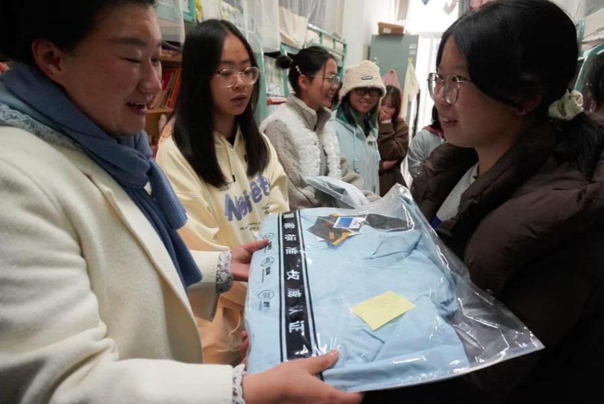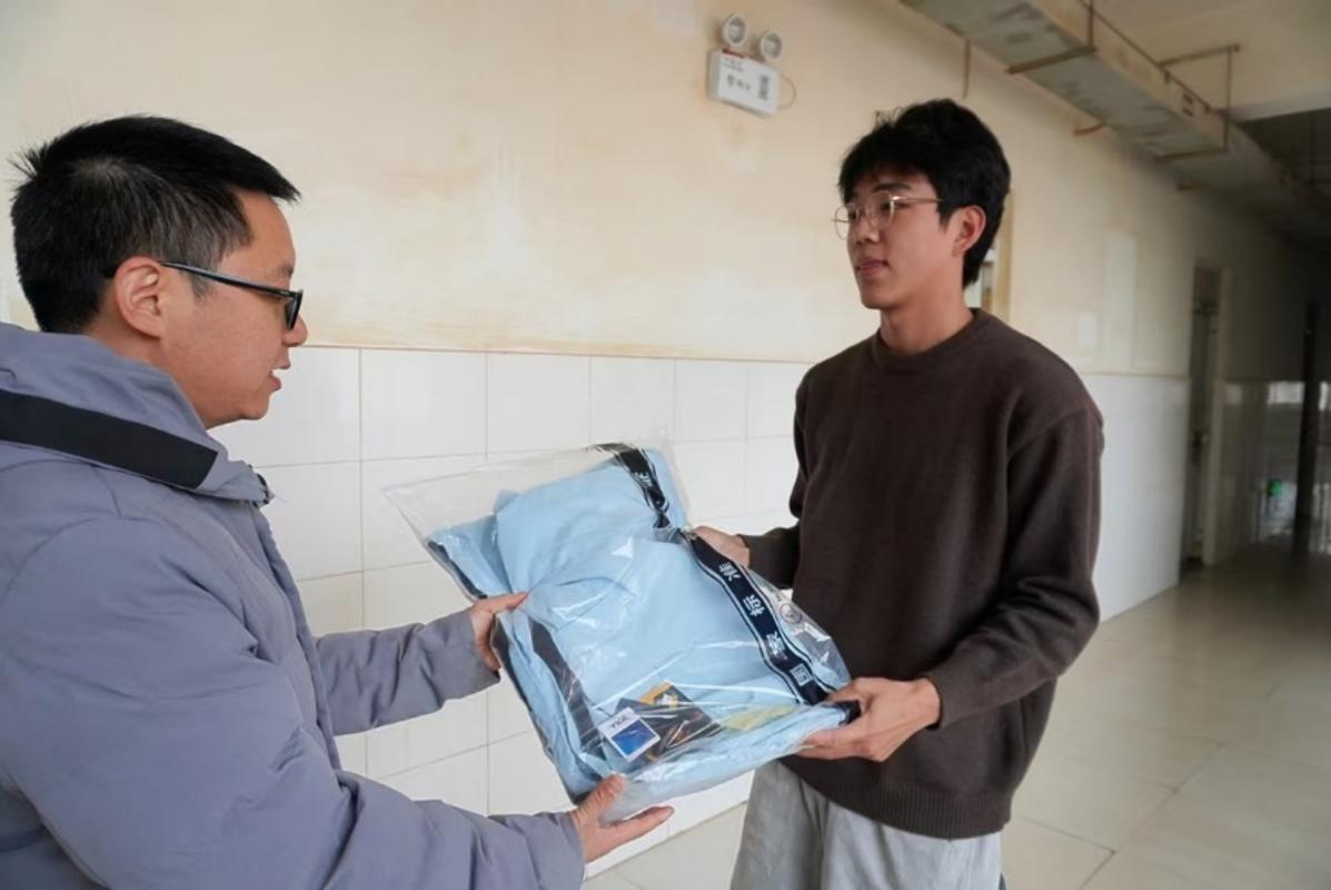 领导及老师们前往学生宿舍,为同学们送上了精心准备的御寒冲锋衣。每到一个宿舍,老师们都与学生亲切交流,详细了解大家的学业情况与生活状况,叮嘱同学们注意防寒保暖,合理安排期末学习计划。